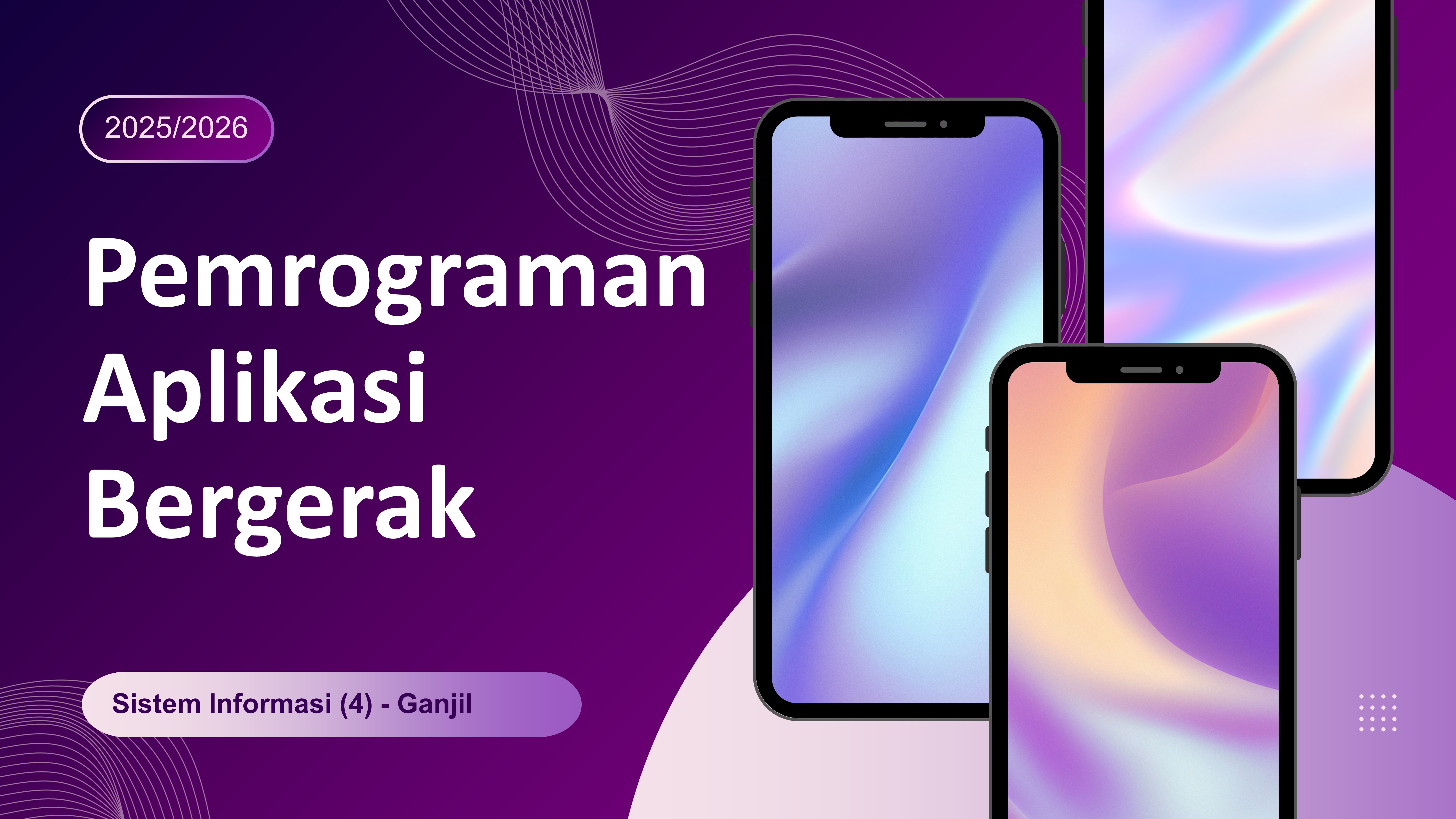 Matakuliah ini mempelajari tentang perancangan serta membangun perangkat lunak yang dapat diimplementasikan pada perangkat bergerak (mobile) berplatform Android. Pembelajaran meliputi dasar-dasar pemrograman pada perangkat mobile, penggunaan library khusus, akses database offline maupun online dengan berbagai metode serta integrasi dengan platform lain sehingga membentukintegrasi antar sistem