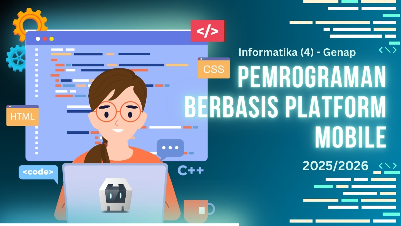 Matakuliah ini mempelajari tentang perancangan serta membangun perangkat lunak yang dapat diimplementasikan pada perangkat bergerak (mobile) berplatform Android. Pembelajaran meliputi dasar-dasar pemrograman pada perangkat mobile, penggunaan library khusus, akses database offline maupun online dengan berbagai metode serta integrasi dengan platform lain sehingga membentukintegrasi antar sistem